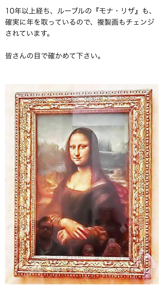 本物も、確実に年をとったが、展示用モナ・リザも確実に年をとった。