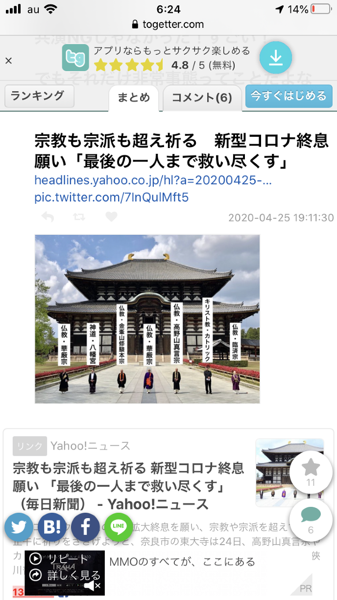 東大寺の狹川普文(さがわふもん)別当は今月3日、「早期終息と感染により亡くなられた方々の追福菩提(ぼだい)を共に祈りましょう」とのメッセージをホームページに掲載、同じ思いを持つ人々と祈りの「時間」を共有しようと呼びかけた。