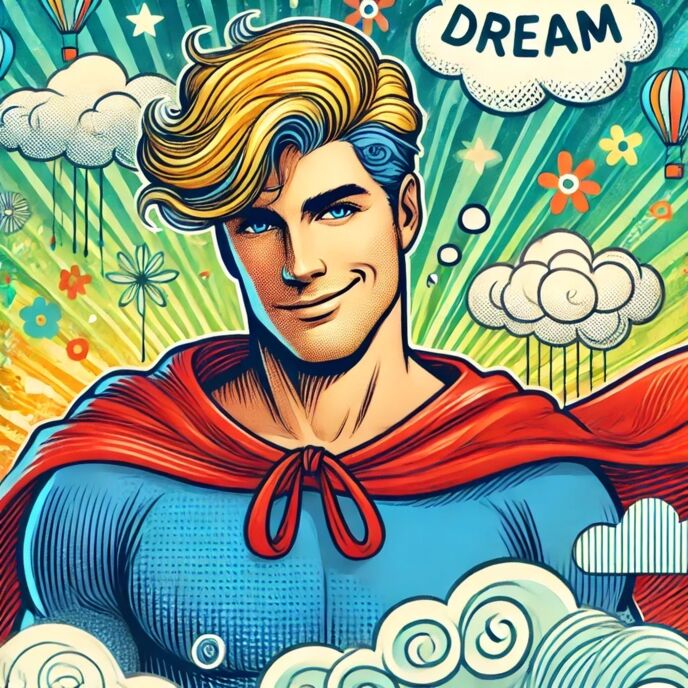 そして、ドリームマンは突然、空中に浮かび上がり、手のひらを突き出して言った。「見ていてごらん!」