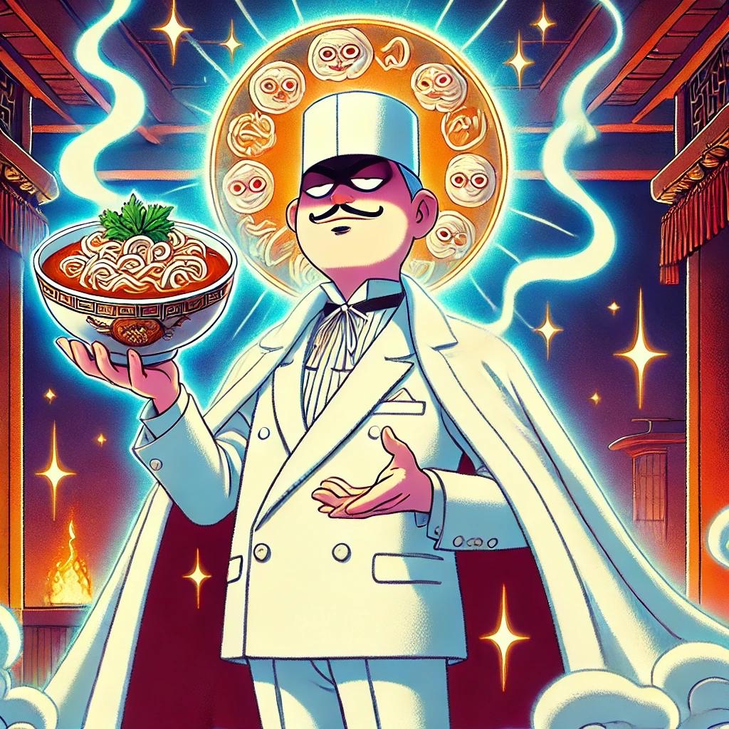 そして最後に現れたのは、「つけ麺の皇帝」こと、ツケメンティウス。彼はラーメンとは思えないほどシンプルで、白いスーツを着て登場。だが、彼が差し出したつけ麺のつけ汁からは、凄まじいオーラが漂っていた。
