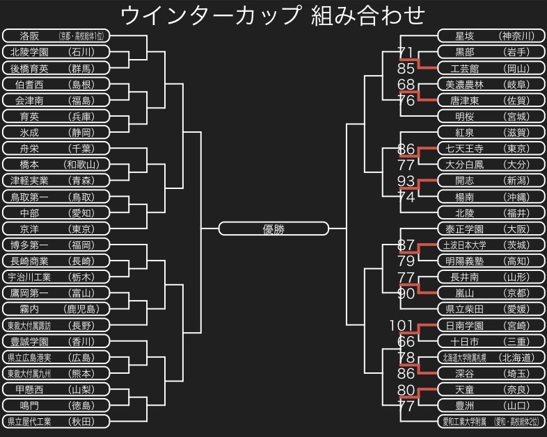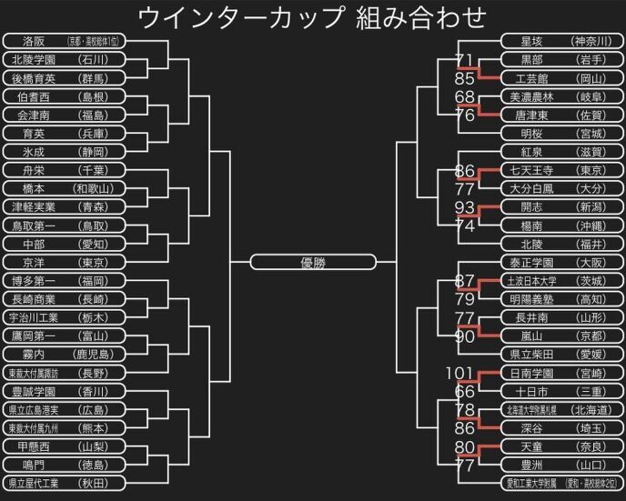 ウインターカップはこの日で、女子の1回戦全試合と男子の1回戦の半分が終了。