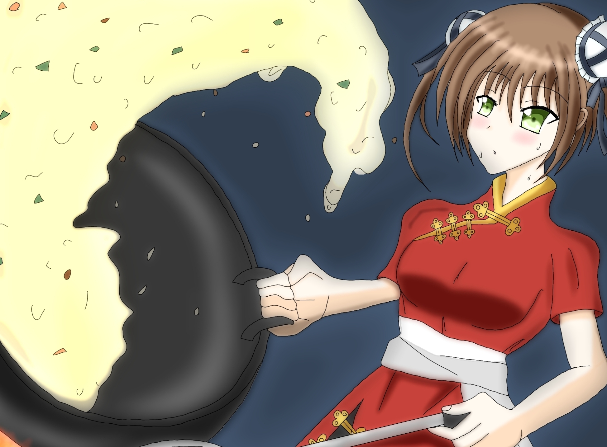 そうして見えたのは、大きな黒い鉄鍋を振るい、チャーハンとやらを宙に舞わせている――女の子。すげぇ調理法だ、しかもライスの一粒もこぼれていない。
