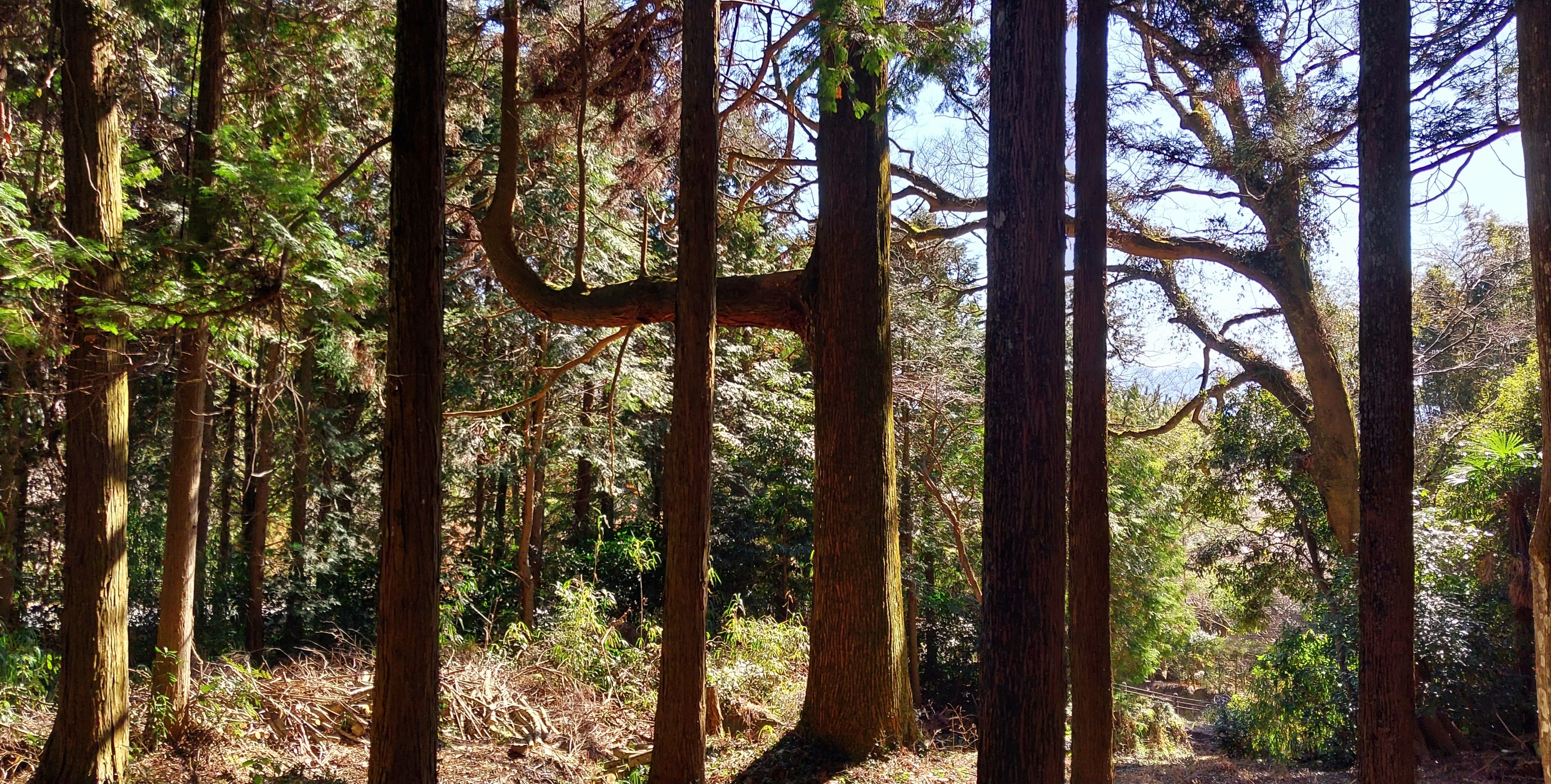 国造神社では大きな杉の巨木の根や幹が祀られていましたが、不思議な杉を見つけました。