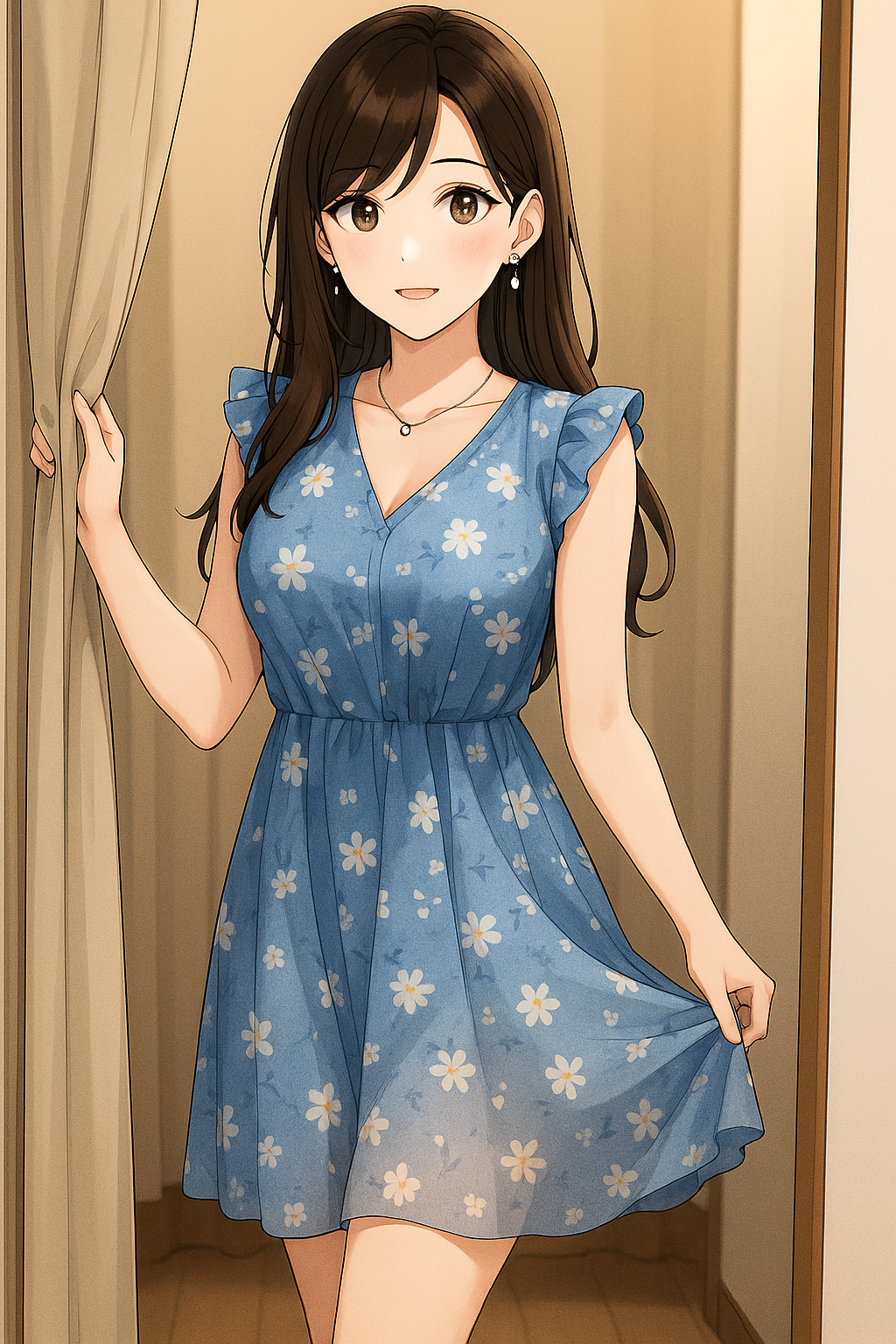 今度は薄手の布地で、歩くたびに裾がふわりと揺れる。