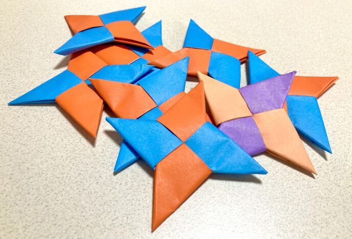 というわけで、毎日せっせせっせと折り紙で手裏剣を折っています。