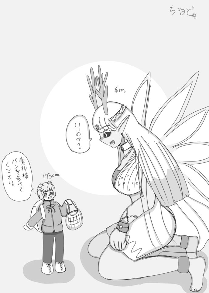 身長は6mあるが、家族には魔神だとバレない様に2.5mぐらいに縮めている。