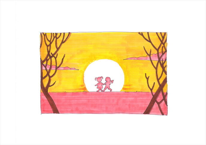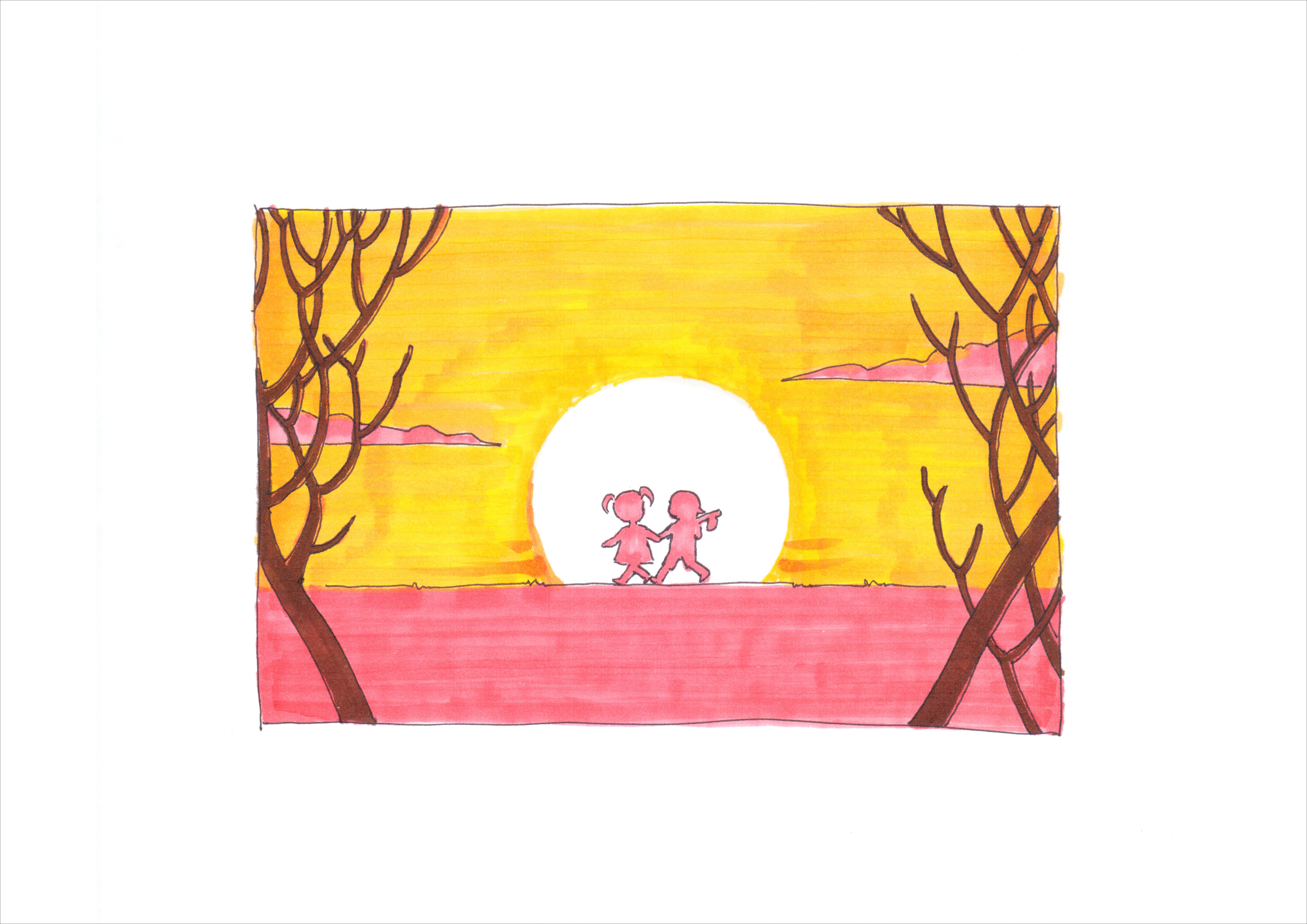 みきちゃんが にっこり ほほえんで、手を つないでくれた。