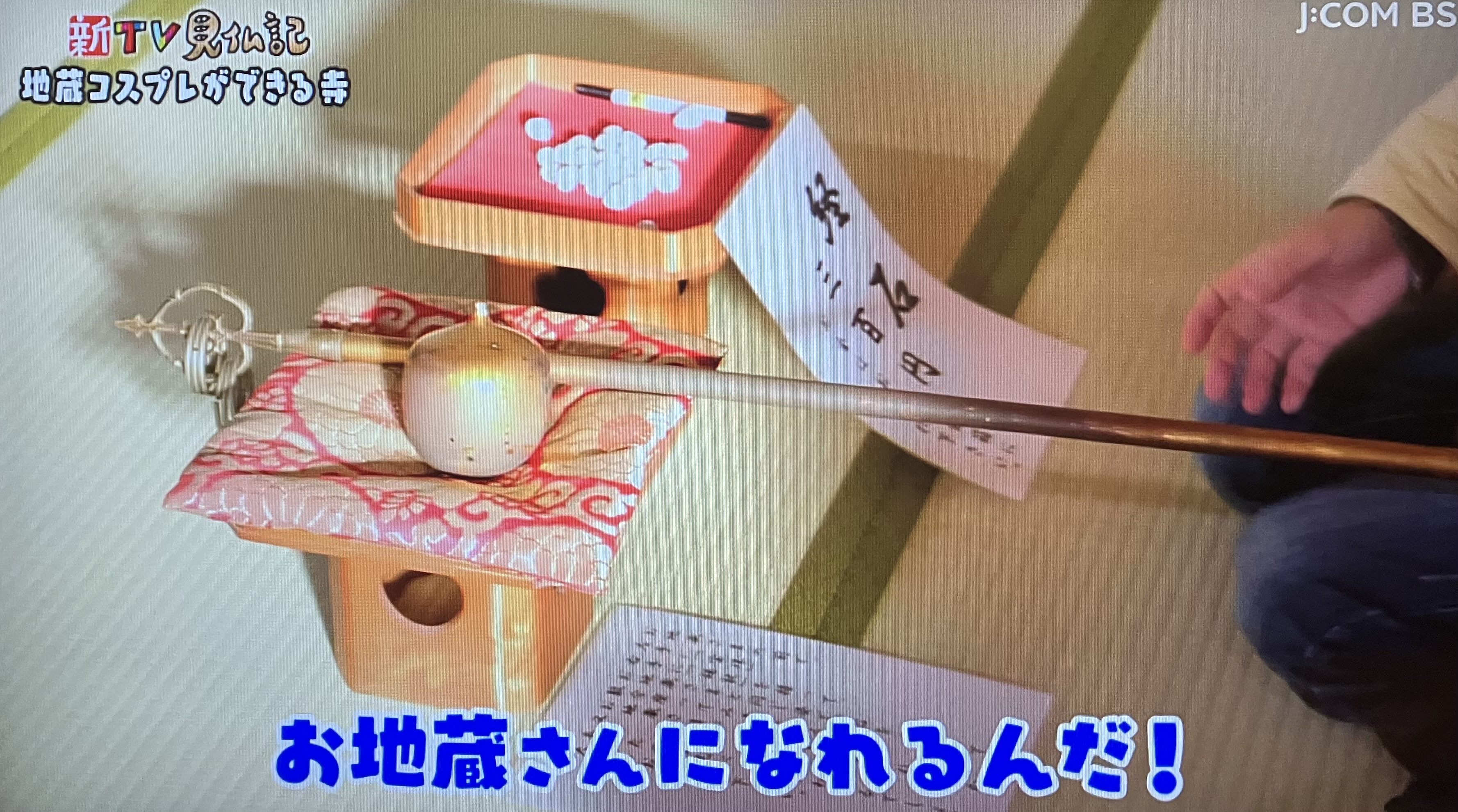 ・お地蔵さんになれるグッズ(錫杖、宝珠)が三方に載っています。