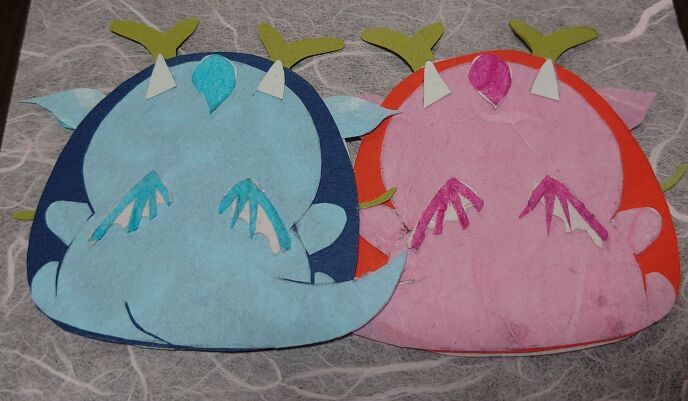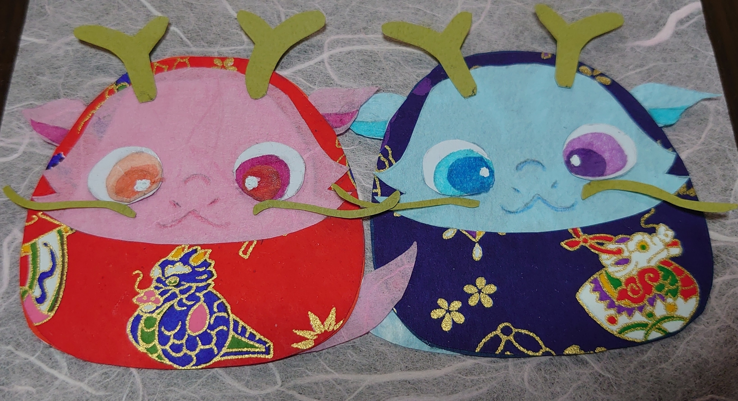 ひつじのはねさんに作って頂いた羊毛フェルトのモモとスイです。それを元に今年の年賀状ぽく和紙で作ってみました。下手ですが💦良い年になりますように