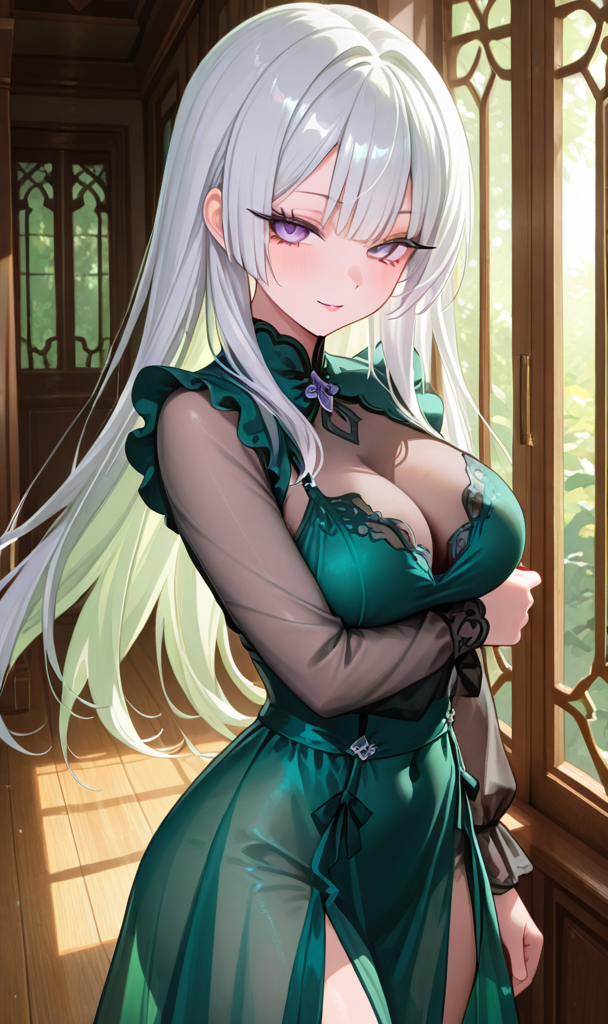 • 聖霊としての神々しさを纏いながら、その肢体は暴力的なまでに肉感的。薄い衣の端から覗く豊満な胸と、歩くたびに波打つ曲線は、見る者の理性を焼き切る。