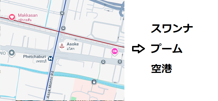 (M)ライン・スクンビット駅から、スカイトレインのASOK(あそっく)駅までは、