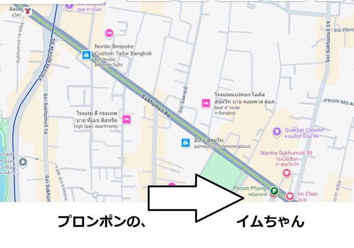 ASOK駅から、ひとえきの、プロンポン駅まで行くと、