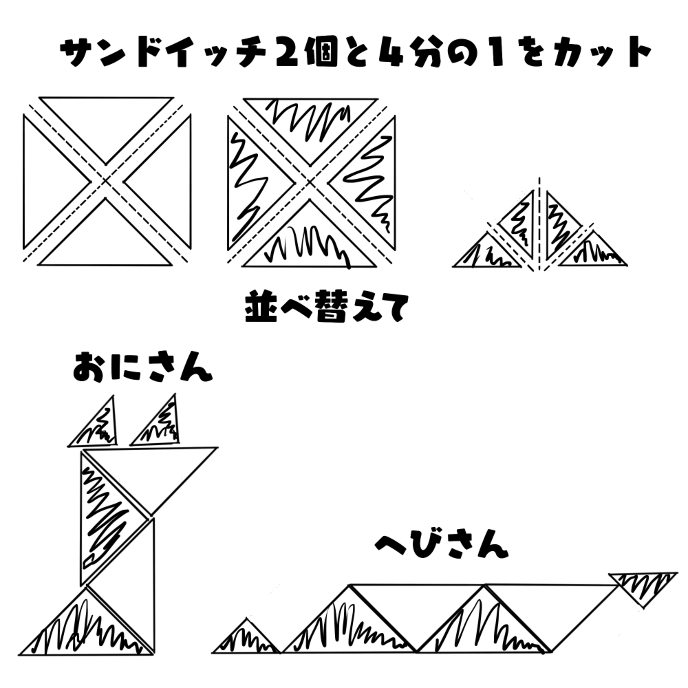 あたしたちが作ったのは二色のサンドイッチで三角を使ったモザイクとも言えないモザイクアート。
