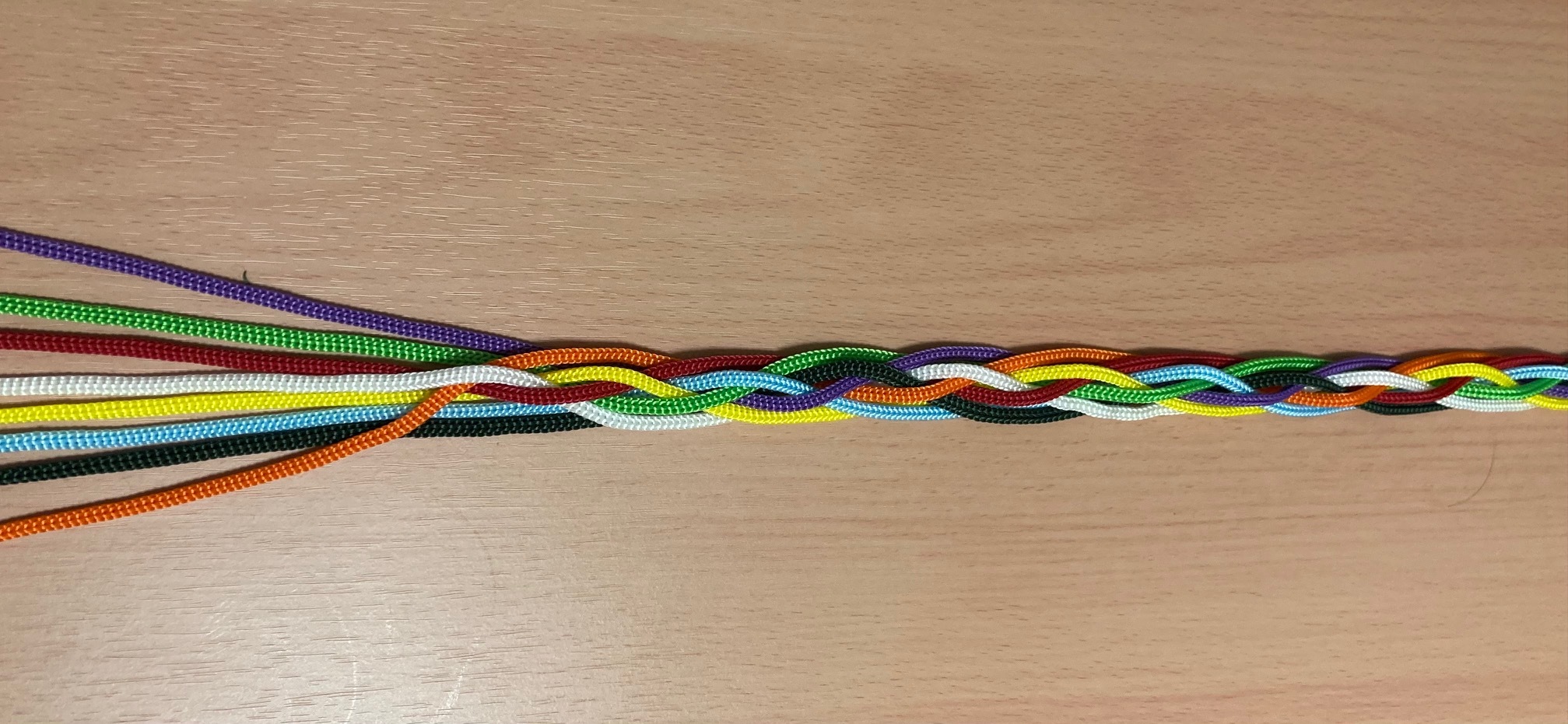 「そうです。歴史も同じように別々の歴史を歩み、その経験全てが混在した組紐に編まれた姿になるということです。この組紐模様が歴史だとしたら、例えばこの桃色の紐が断裂しても、組紐としては成立します。見る方向から違うように見えることもあるでしょう。歴史や“あやかし”の異譚・異聞があるのもこのため。つまり、矛盾や因果的におかしいことが生じても、それを内包した正しい模様になるということです」