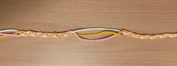 両端は一本の縄になっているが、中央は三本の紐になっている。