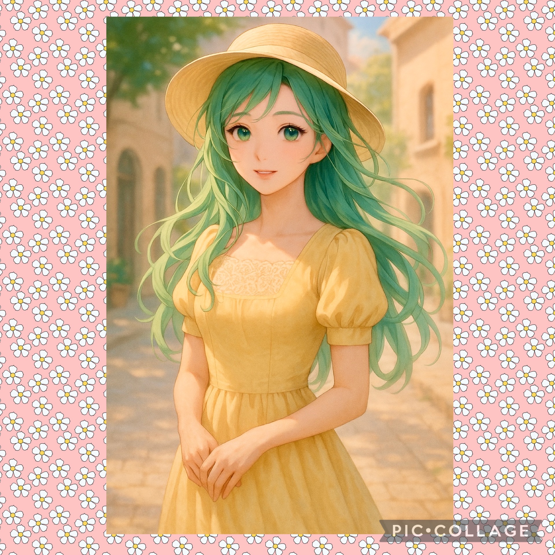 7話で買ったワンピースを着て帽子をかぶったリーナ