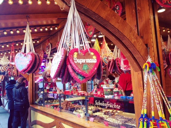 私が独り言のように呟いて周りを見渡すと、携帯を見ていたクラウスが顔をあげて、駅の方をみた。クリスマスマーケット目当ての観光客も多いし、人の声にクリスマスミュージックで街全体がお祭りモードだ。街のいたるところはクリスマスのデコレーションで飾られており、街行く人も、サンタの帽子を被っている人やクリスマスプレゼントを抱えている人など、普段とはちょっと雰囲気が違い、とにかく見渡す限り笑顔、そして笑顔。