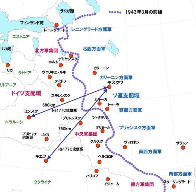 作戦の舞台となった1943年の東部戦線の様子を図示します。