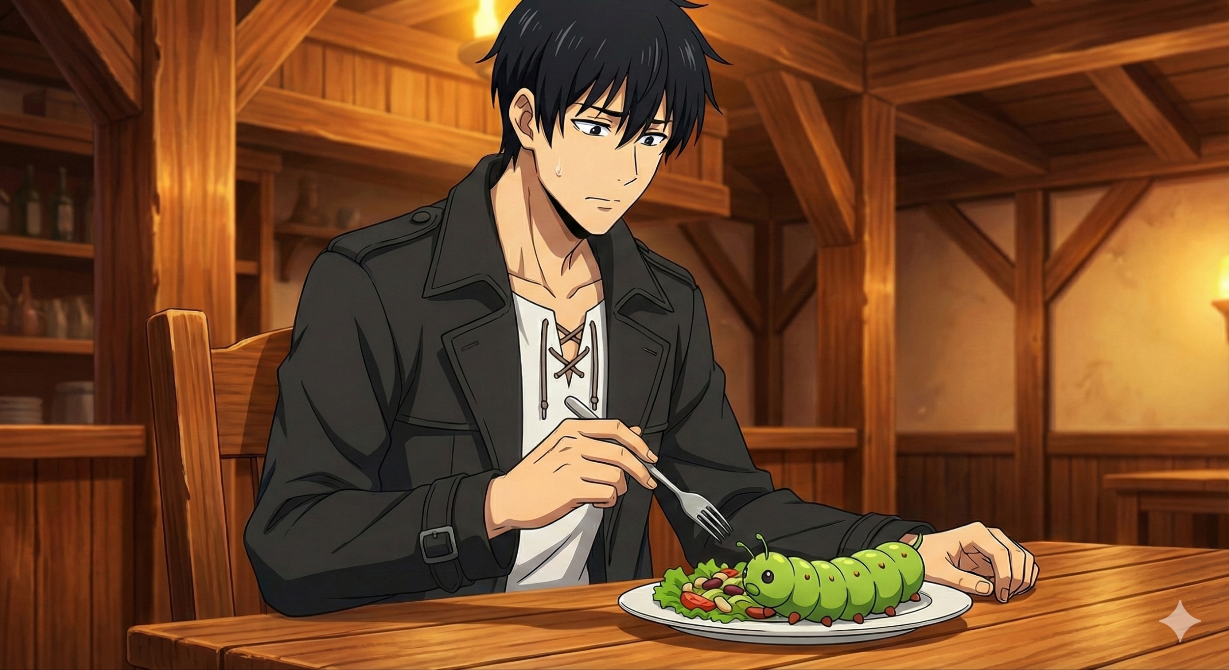 パンとスープが無くなり、サラダに入っているでっかい紫色のイモムシのような不気味な見た目の果実の様な物に、フォークを刺すべきか悩みつつアヤメに尋ねた。
