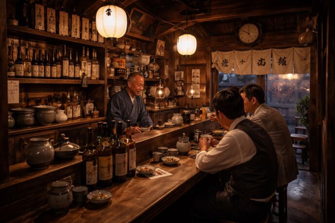 昭和初期風の酒屋は、いつ来ても少しだけ湿った匂いがした。