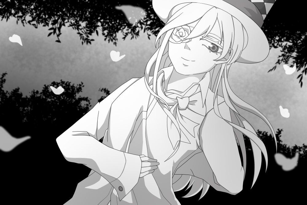 「最初の茶会での出来事だ。殺された帽子屋は無条件にアリスを愛し、アリスは帽子屋に依存した。森は茨だらけになり、土はぬかるみ、空は淀んだ。アリスと帽子屋の周囲だけに薔薇が咲き、甘い匂いが漂う妙な空間だった」