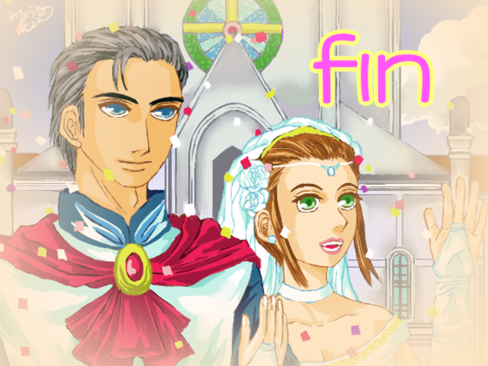 ずっと続いていたナレーションが止まった。代わりにエリアスと私の結婚式を描いた一枚絵が暗闇に大きく表示された。finの文字と共に。