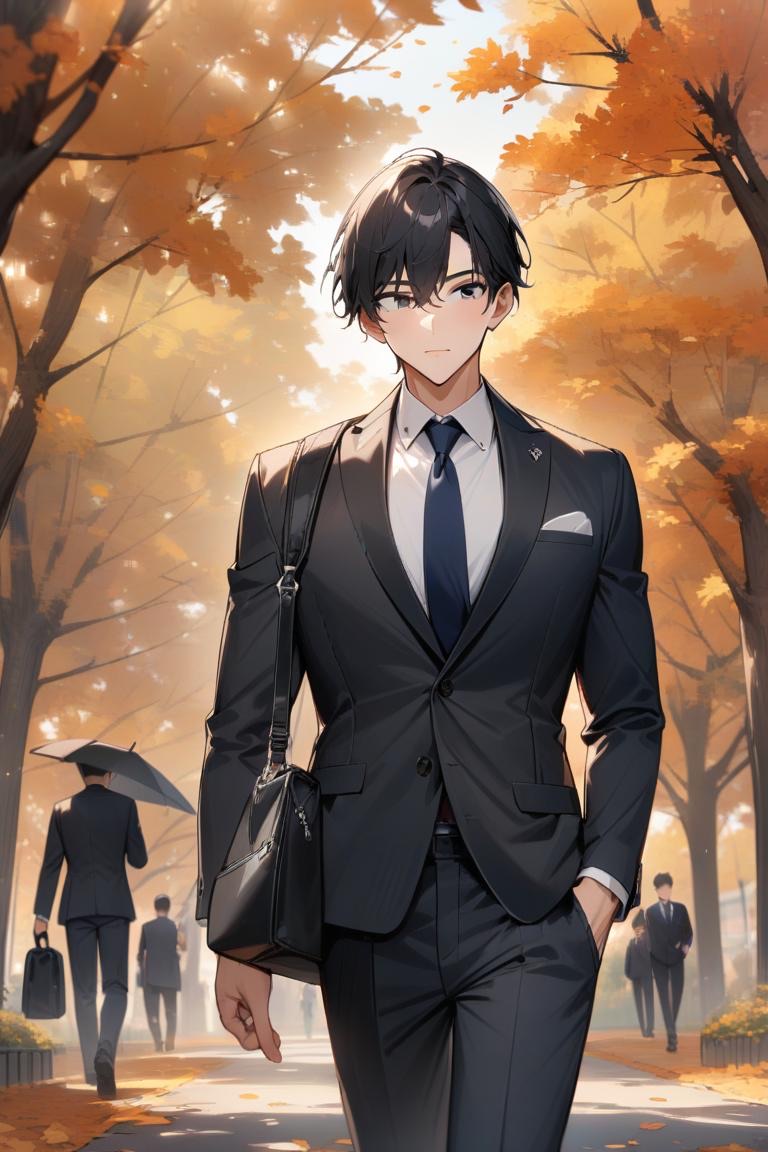 黒のカバン、紺のスーツ。規則正しい朝のルーチン。