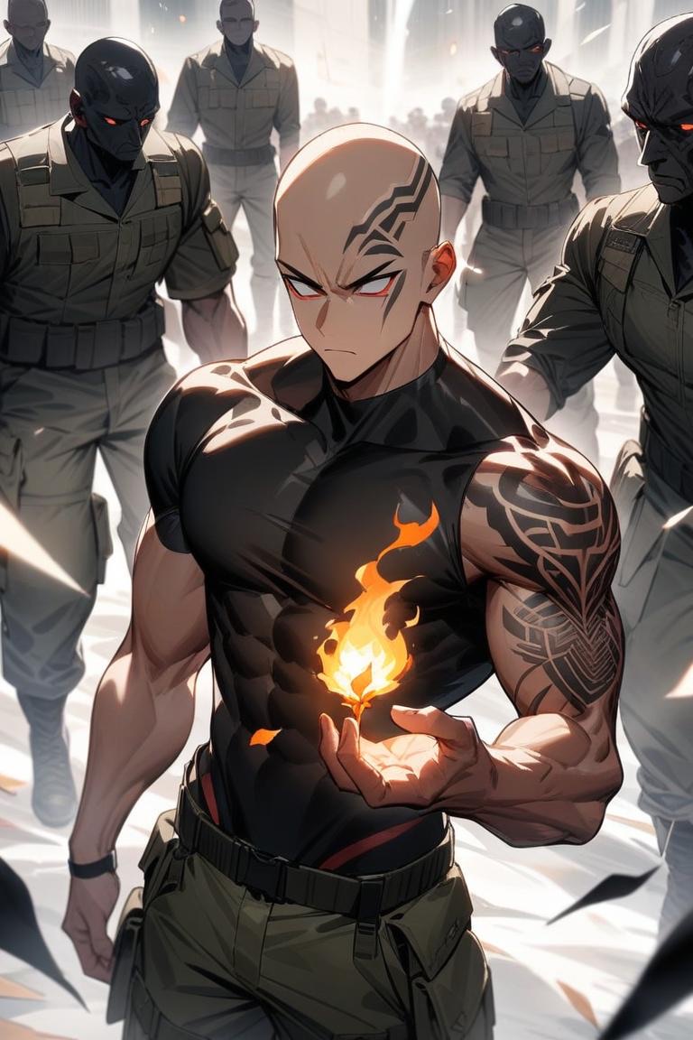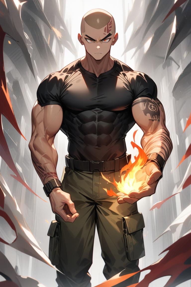 鋭い目つき、筋肉質な体格。