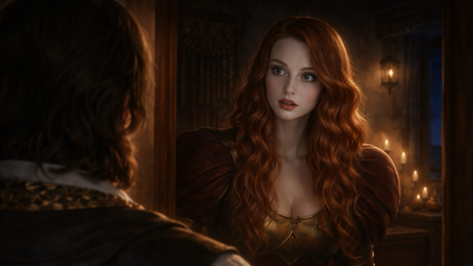 炎に照らされた君は