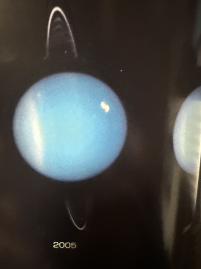 自転軸は、公転軸に対してほぼ100度傾いており、つまり横倒しの状態で84年間かかって太陽の周りを回転すると言う奇妙な惑星です。
