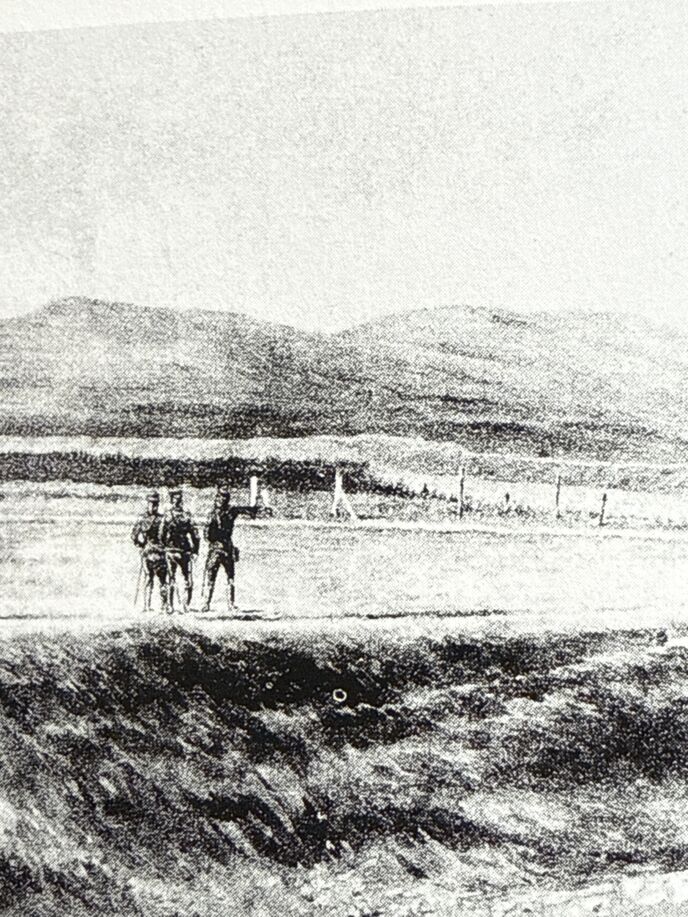 《南山の戦場。ロシア軍の塹壕跡が延びている。》