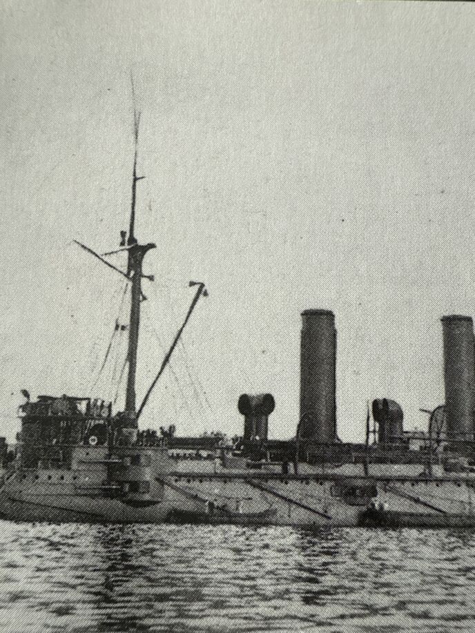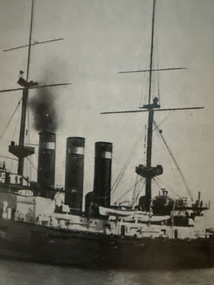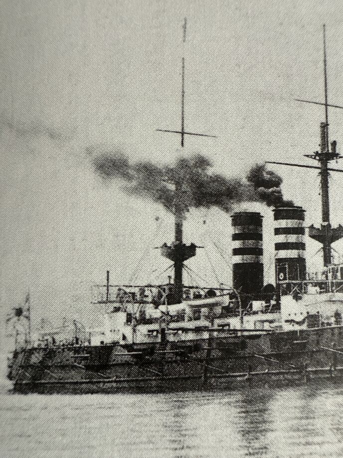 装甲巡洋艦「浅間」。第四戦隊に随伴した。