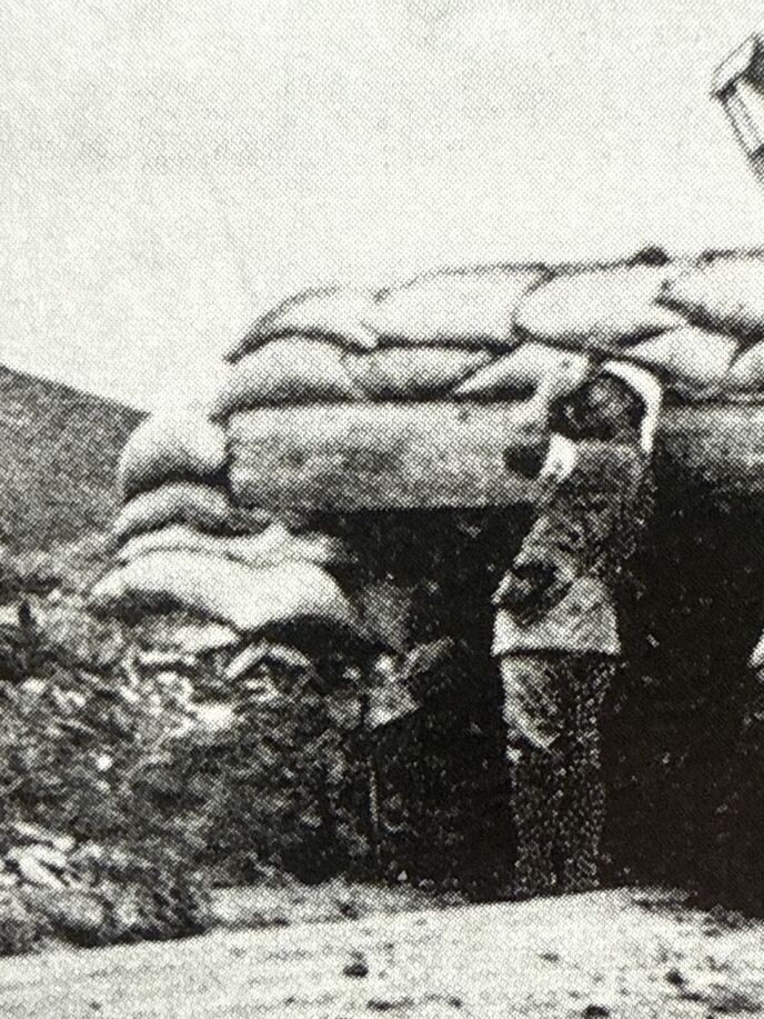 《南山のロシア軍陣地のひとつ。占領後の写真で立っているのは日本軍将校。》