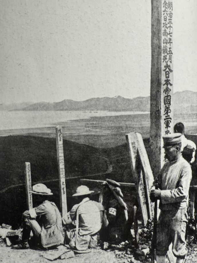《南山占領後、戦死者の墓標を立てた部隊もあった。》