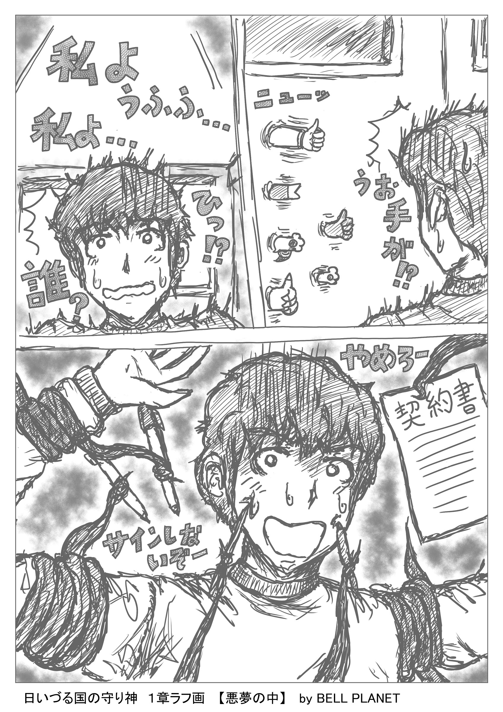 手は一度壁に引っ込むと、再びニューと突き出てきた。それらは先に見た夢の契約書を差し出していたのだ。