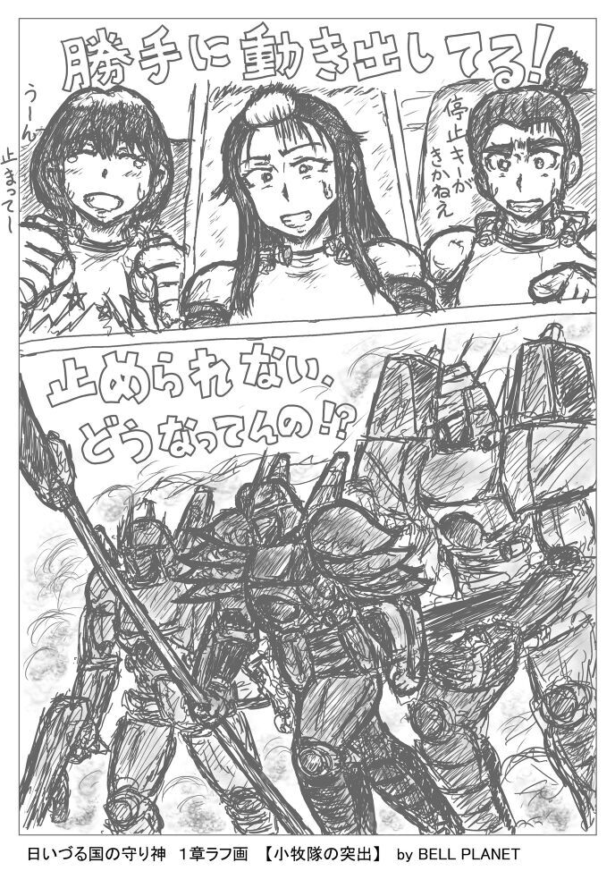 先頭の少女と白い巨獣に目が行きがちだが、付き従う5機の人型重機もかなりの錬度だ。