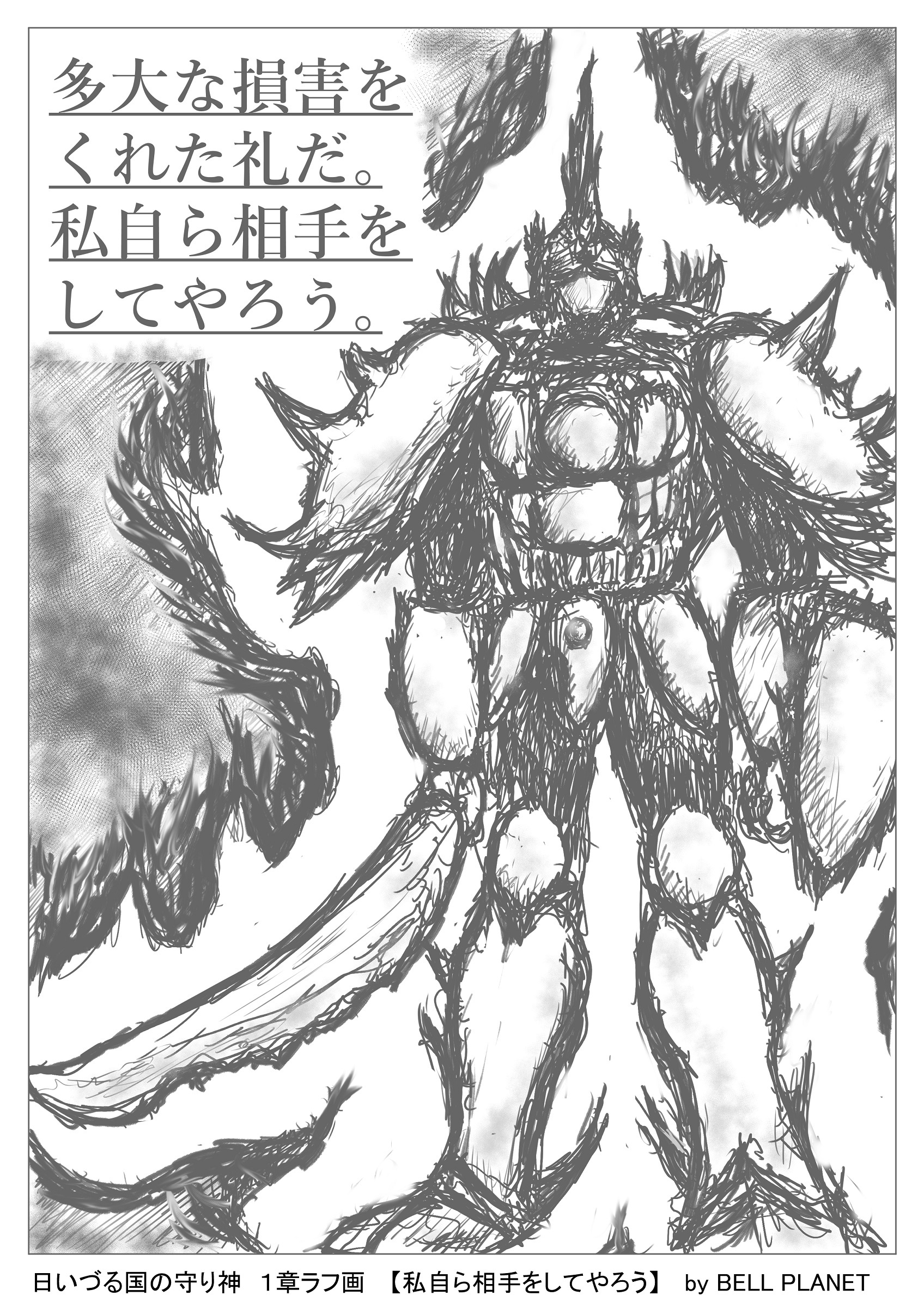 誠は荒い呼吸で相手を見据える。相手は頭部の口を開いて嘲笑った。
