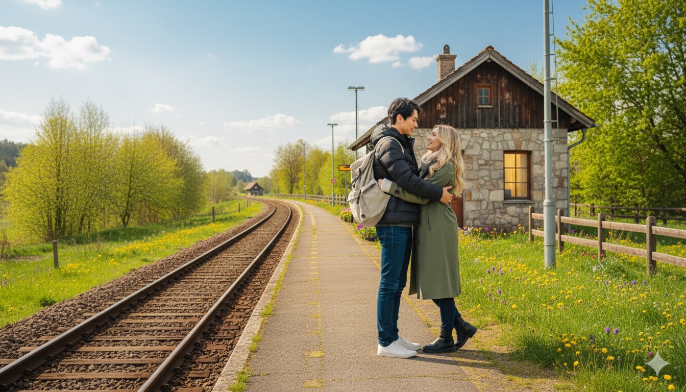 空気の澄んだ高原の駅には、山の残雪がきらめき、遠くで鳥の声が響いていた。
