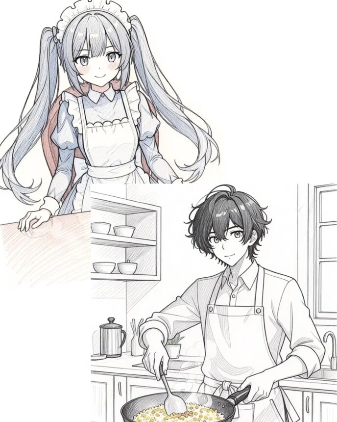「りょーかい。あたしも早よぉ来すぎたね。……って、おぉ? なんか中華鍋でめっちゃガチなチャーハン作っとる男子高校生がいてるし」
