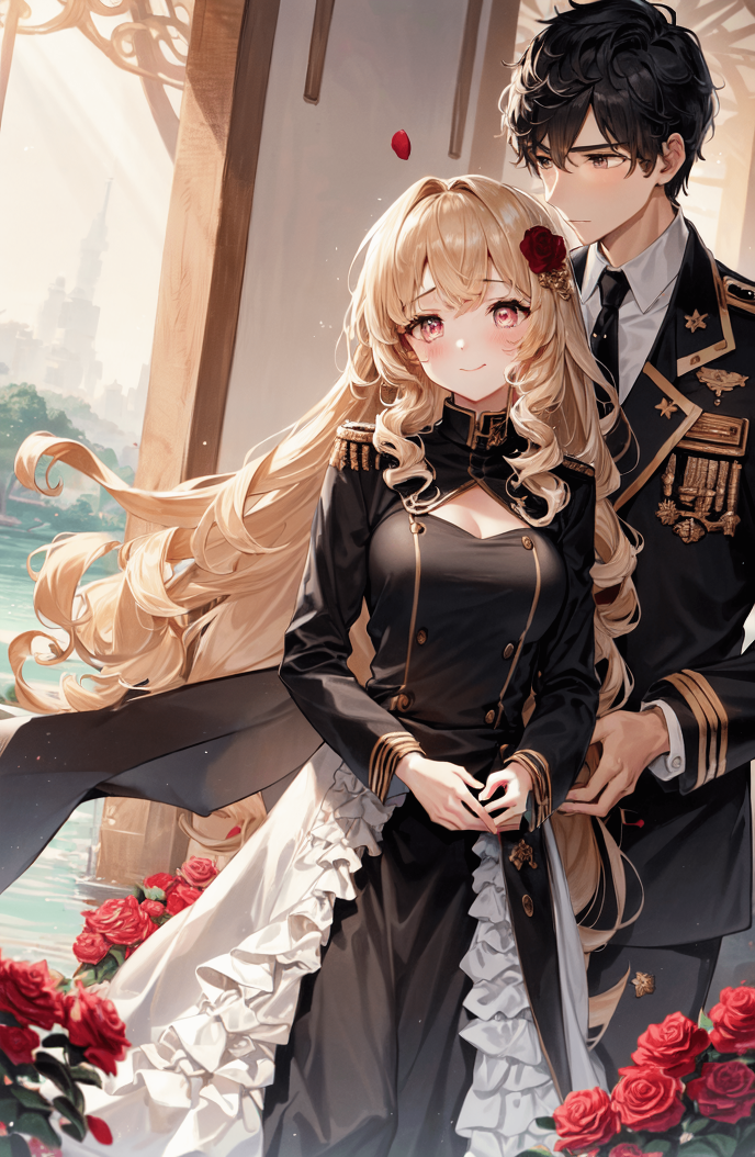 メルティアを腕に絡みつかせたまま、ジークが右手でメルティアのピンクの薔薇の花を直す。