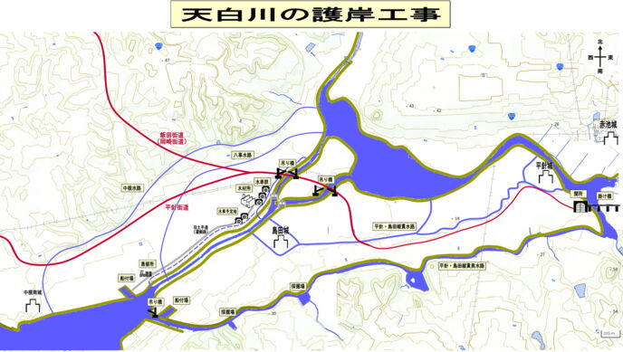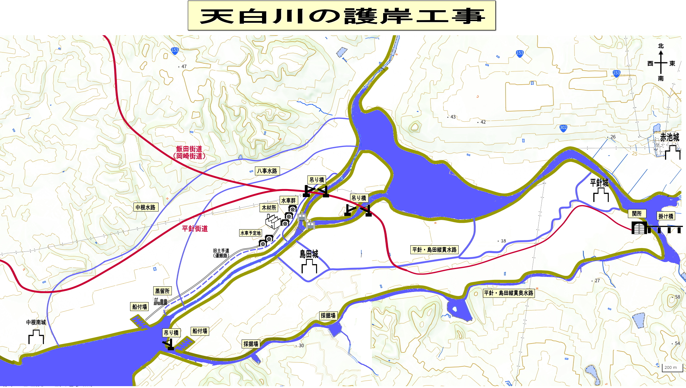 同時に土砂を運ぶ大きな平船が通れる幅広い水路は、平針・島田を守る外堀となる。