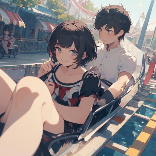 「サブちゃん、何かおしりに当たってる…。でも、サブちゃんにやったらこの身体預けられるかもしれへんな…。じゃあ、お化け屋敷入って見よか…。入ってる間、ずっと「ぎゅっ」とハグしててや。そうでないと…。」