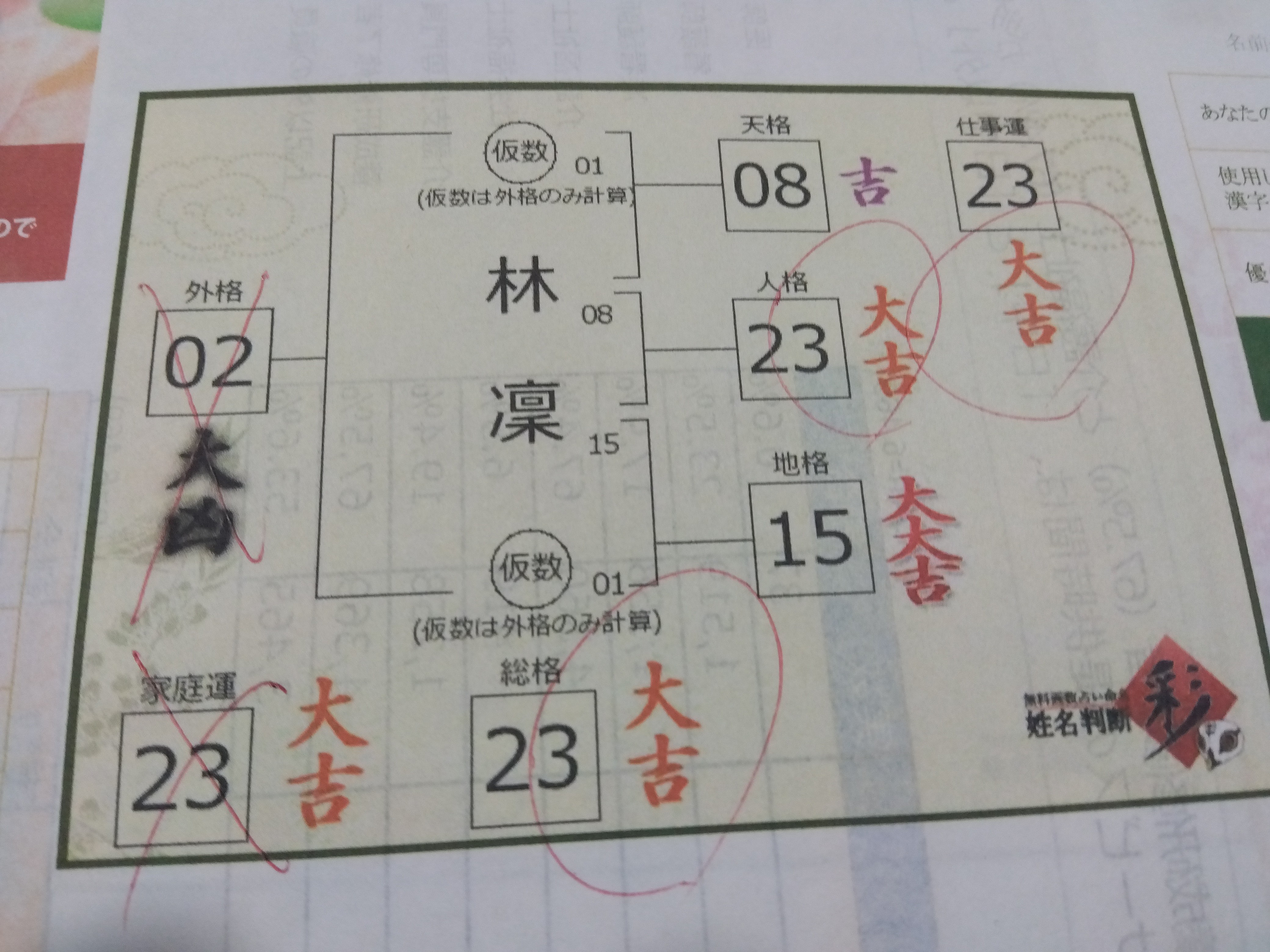 今回の「リンリンちゃん」の場合は「恋愛運」は関係ないので「外格」は無視してください!