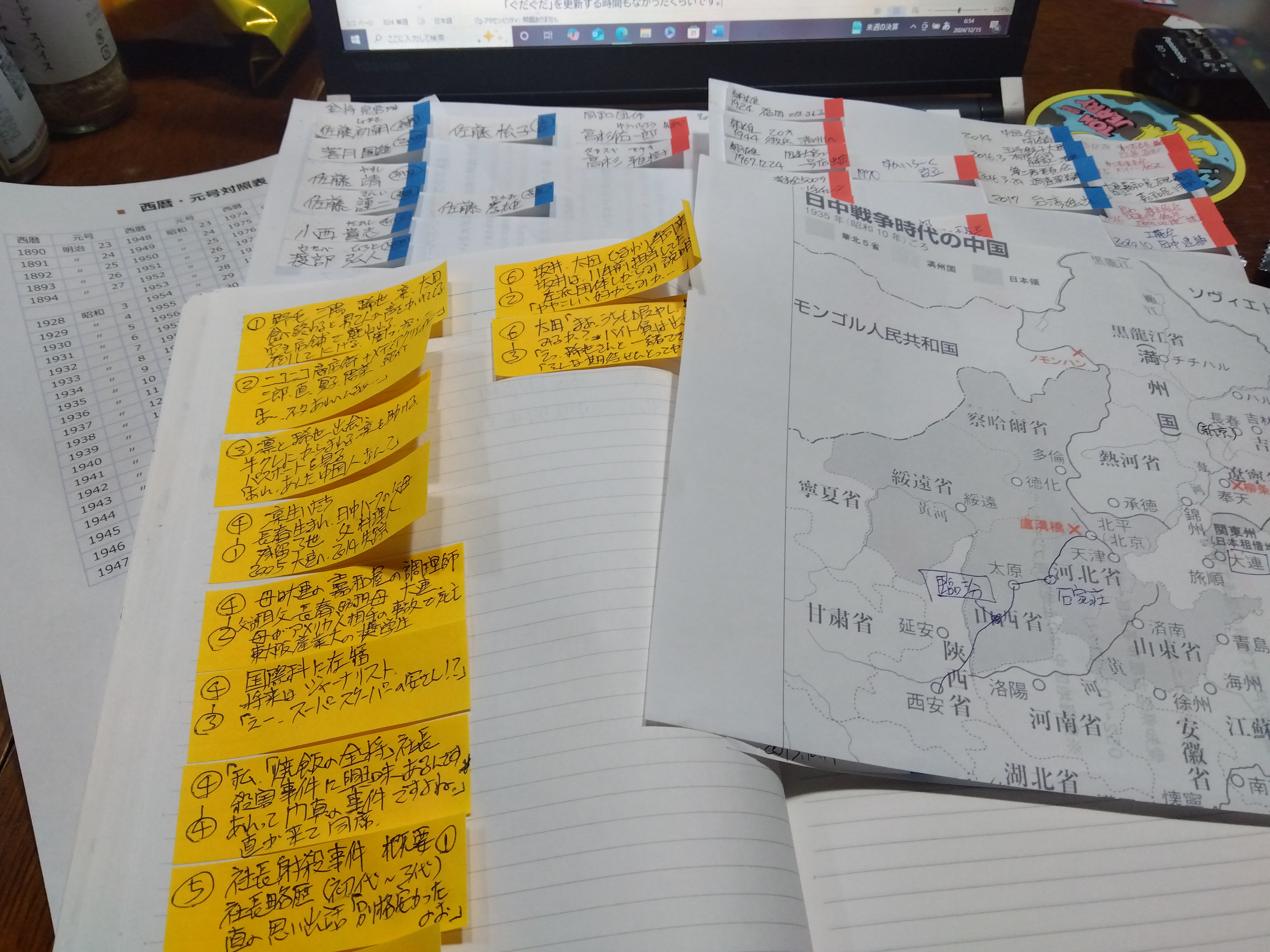 戦時中の中国の地図出して、当時の地名を調べたり、