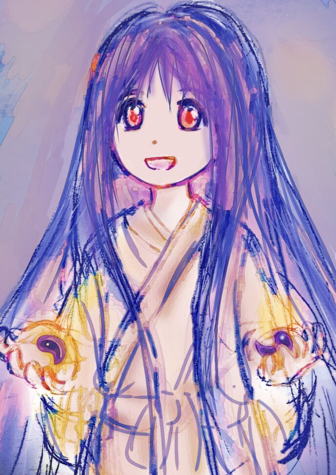 モクの髪が長く伸びて海のような藍色になり、瞳が太陽のような橙色に変わりました。