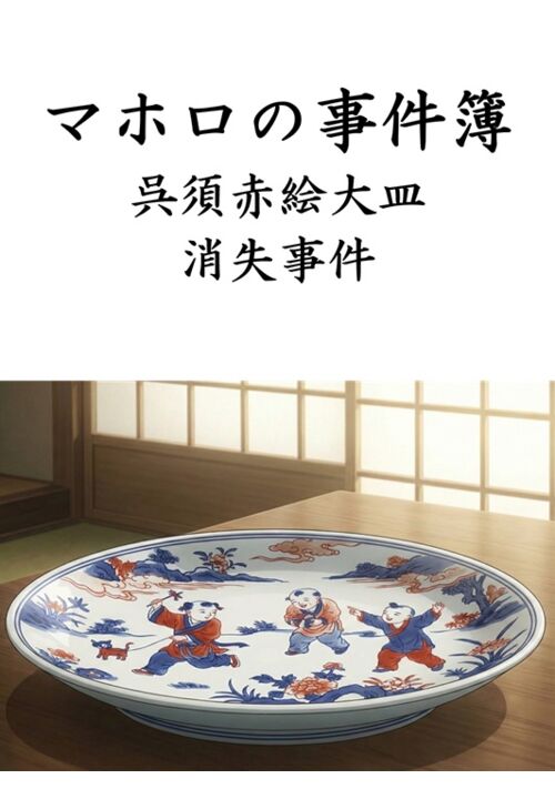 そんな二人に前回の事件解決で名が売れた曽我警部がお礼に来る。同時に隣県の厄介な事件を持ち込んできた。『呉須赤絵大皿消失事件』。資産家の徳田氏が自分の目利きを活かして佐藤という怪しい業者から購入した呉須赤絵大皿。徳田氏が大皿に惚れこんだ蒐集家仲間の多田氏に頼まれて売ろうとした矢先、煙のごとく消失してしまったのだ。偶然なのか別室に居合わせた佐藤。しかし彼も皿を隠し持っている様子はない。大皿はなぜ消えたのか。どこへ行ったのか。