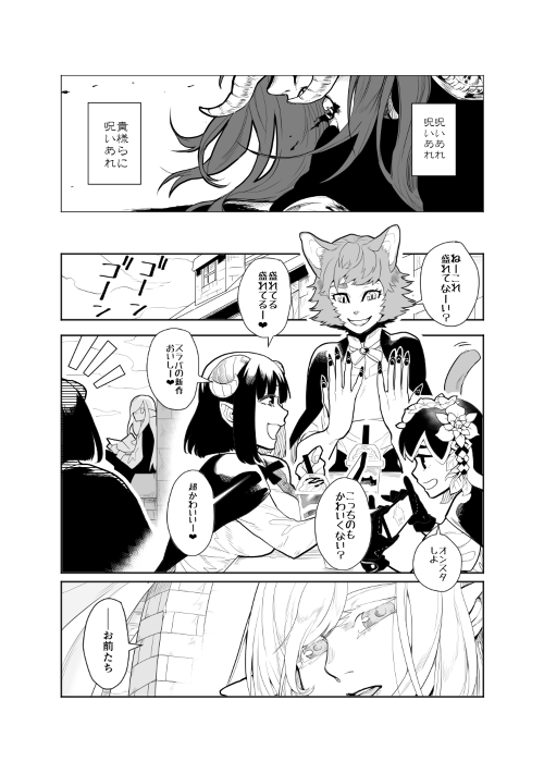ある時を境に、世界が夜を迎えるたび、黒い羽根が降るようになった。朝になれば不思議と消えるのだが、その夜はちがった。去来夜と三日月の元に、天使を名乗る翼の生えた白い犬アリオンが現れて、去来夜のお気に入りのオルゴールを、夜の女神のものだから返せと言う。そこで悪戯好きの去来夜は、オルゴールの所有権を賭けて、天使相手に得意のカードゲームを始める。だが、三日月の懸念通り、天使は負け続け……おまけに夜も明けず、黒い羽根は降り止まない。これも、女神二クスの仕業だと言うが、果たして世界はどうなるのか?