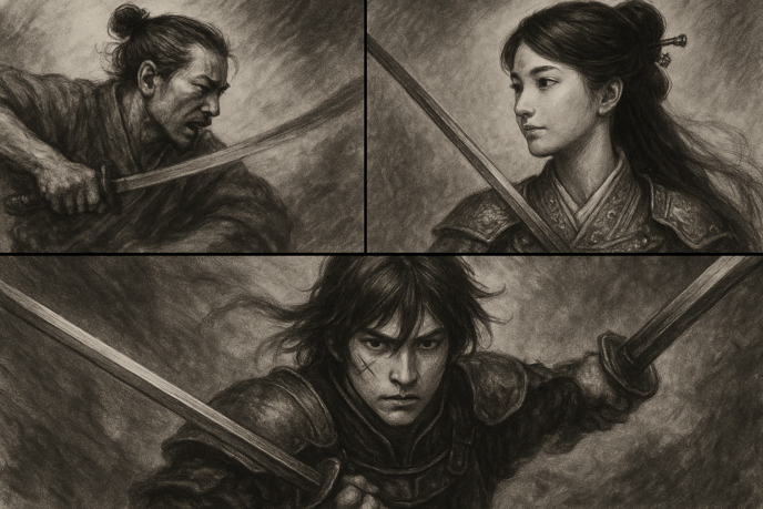 涼景は、柄を強く握り、ゆっくり振り上げた。だが、その刹那、玲凛が強く帯を引いた。まるで、涼景の太刀を止めるように。一瞬、涼景の集中が途切れる。