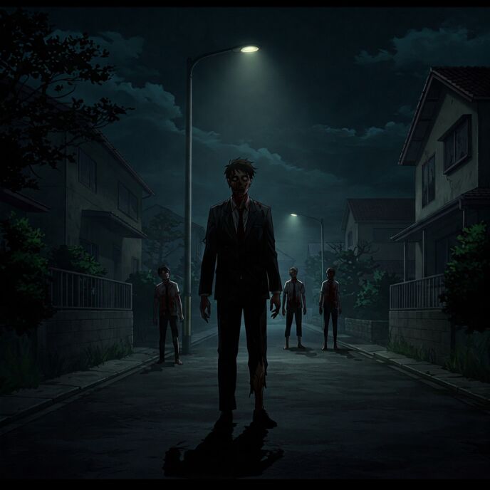 何が街灯の中に入り込むと、人影で、着ている服も、様子も分からない。だが安定しない足取りに揺れるその動きは、まるで映画に出てくるゾンビだ。