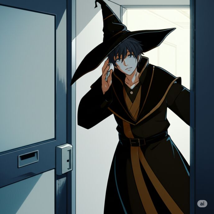 呆気にとられ、混乱する僕に声をかけたのは、この部屋にいなかった人物。部屋の入り口に立っているのは、黒色のトンガリ帽子に黒いローブを羽織った男だ。